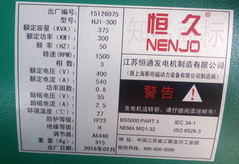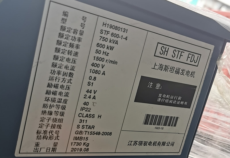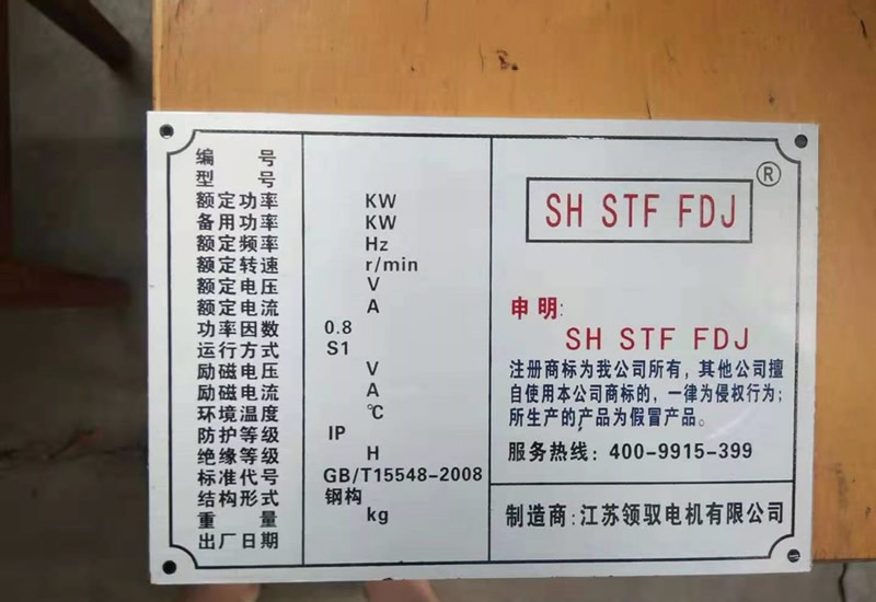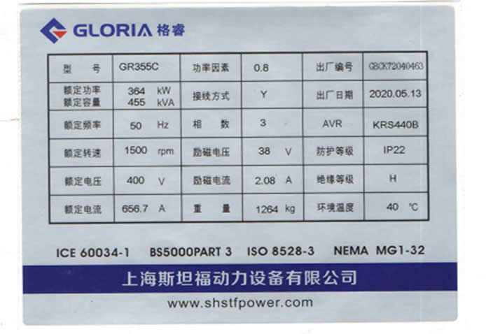每台开云(中国)-格睿电机出厂机身铭牌记录有发电机对应的功型号、额定功率、发电机编号、励磁电流、励磁电压、防护等级、环境温度、重量等技术参数,验查铭牌参数和实物是否相符。