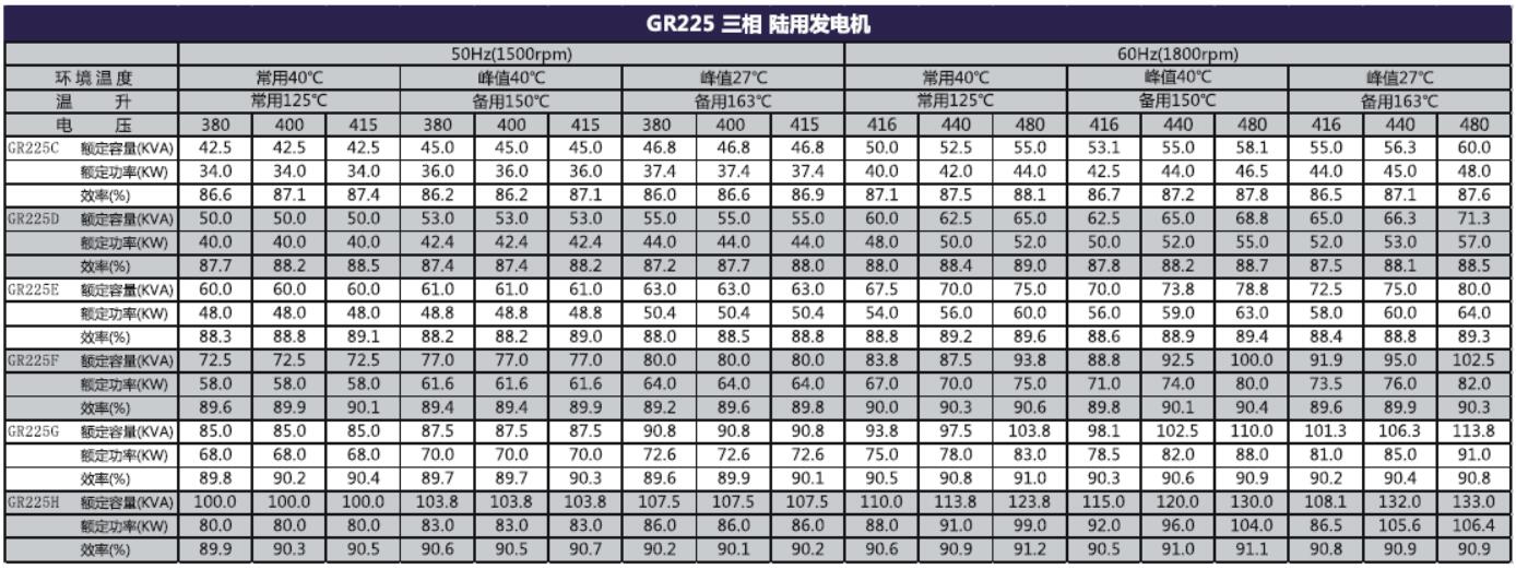 注:所有陆用额定值是基于海拔1000米内,环境温度为40°C。