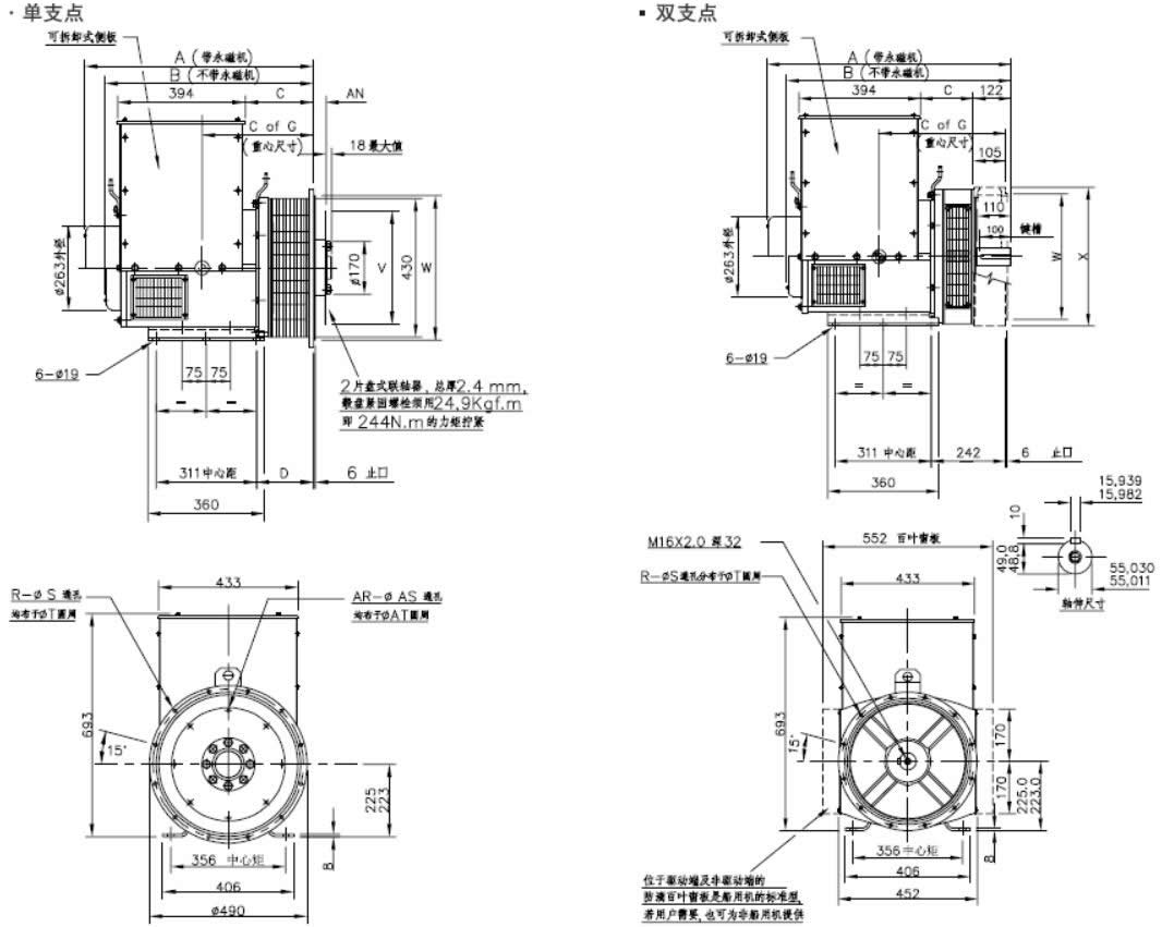 ●可选MX341或MX321AVR,可选的三相感应检测模