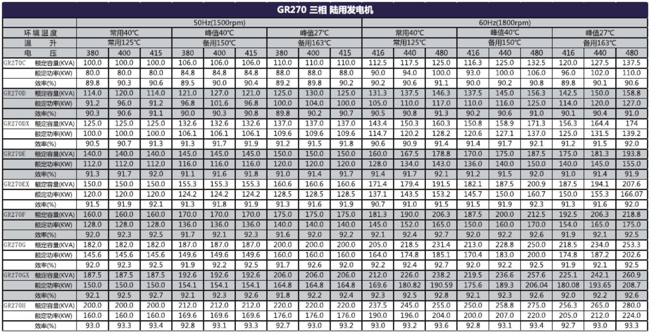 注:所有陆用额定值是基于海拔1000米内,环境温度为40°C。